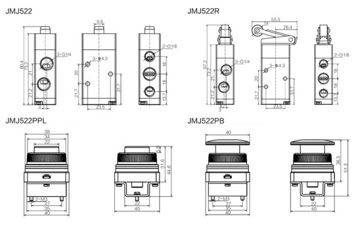 JMJ series 5 port 2 way direct action Pneumatic Mechanical valves JMJ-01 JMJ-02 JMJ-03