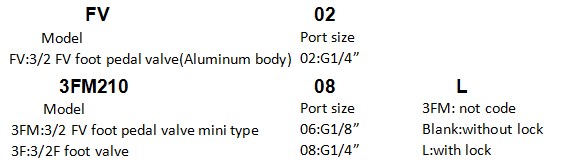 3/2 way foot pedal control switch valve FV-02